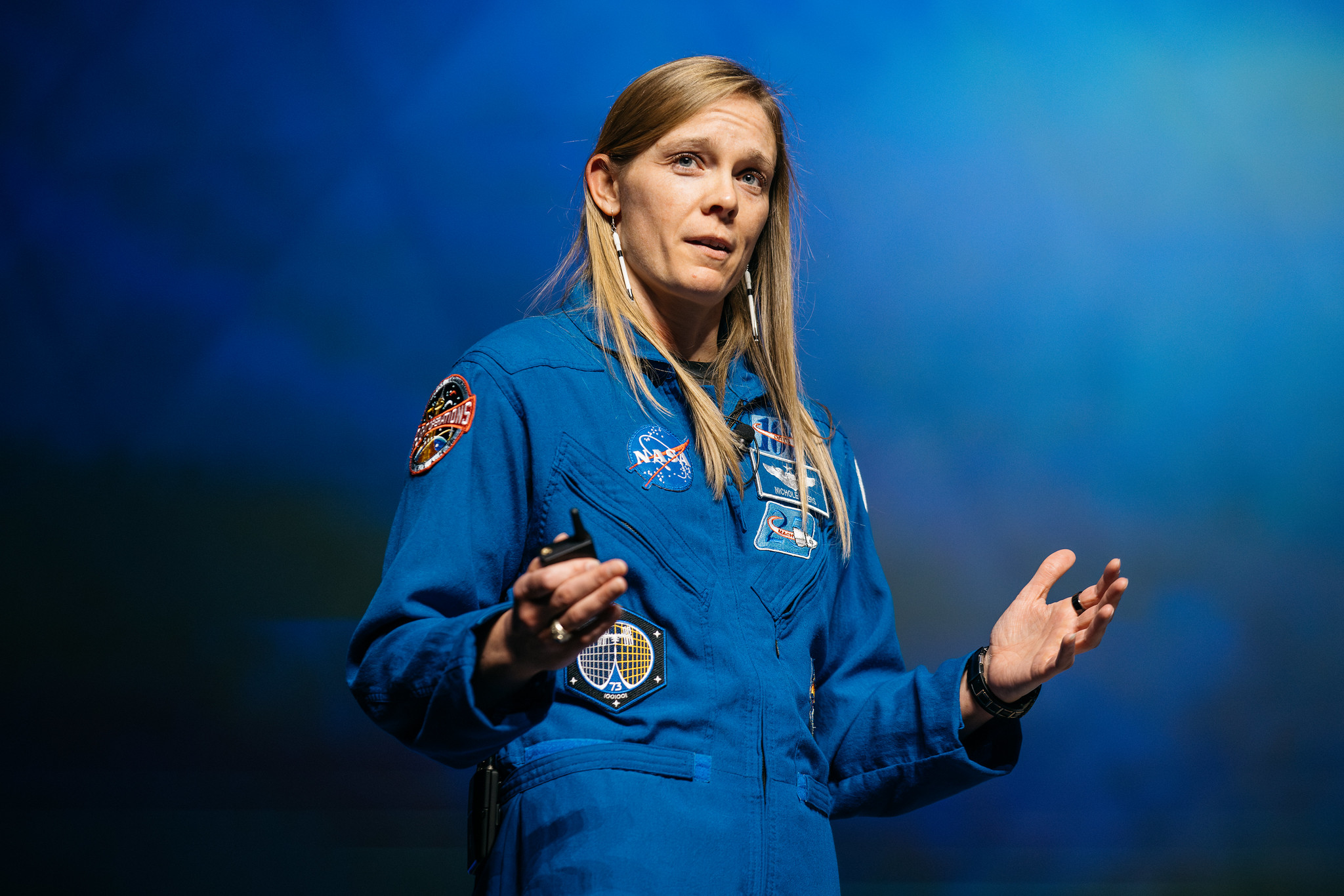 “I get a phone call from Texas,” she says. “So I’m on the phone with Reid Wiseman, who was the chief of the astronaut office at the time. He asked me if I still wanted to work with NASA, and I reached over and grabbed my sister’s arm, and it was just a twin thing. She knew before I said a word what was happening.”